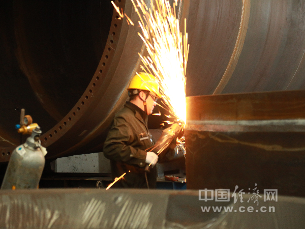 圖為中交天和西安裝備制造有限公司的風(fēng)電塔筒車間。中國經(jīng)濟(jì)網(wǎng) 王蒙/攝